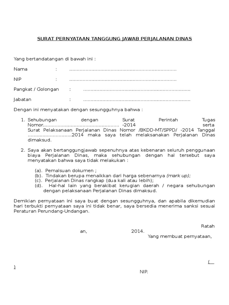 Contoh Surat Pernyataan Perjanjian Tanggung Jawab - Surat Pernyataan Tanggung Jawab Perjalanan Dinas - Surat ini bisa berupa perjanjian pembagian harta.